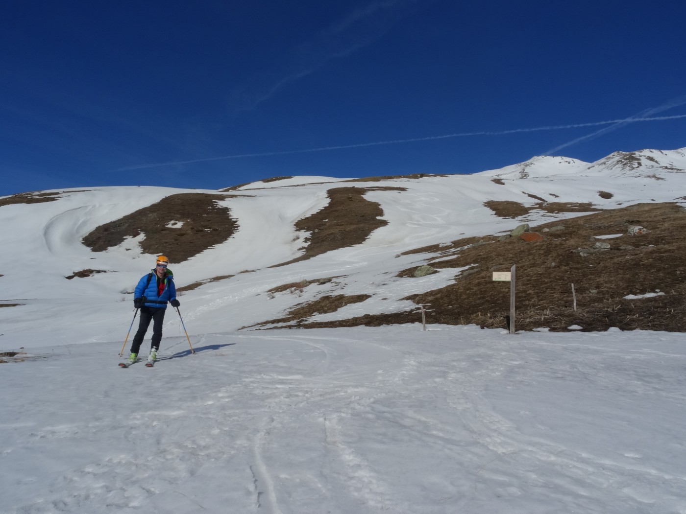 Beaune (stop sur la route à 1500 m) - Bréquin (stop à 2950 m, bcp de vent et neige trop irrégulière) - descente vers le col de la vallée Etroite puis versant nord - remontée au mont du Chat (2803 m) - Beaune. Déchaussage sur la route quelques mètres avant la voiture. D+/- 1780 m