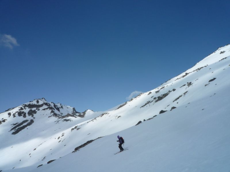 Le secteur à bien souffert du temps chaud de ces derniers jours:l'enneigement devient continu vers 2000 environ evec pas mal de zones rochers.Portage 30mn.