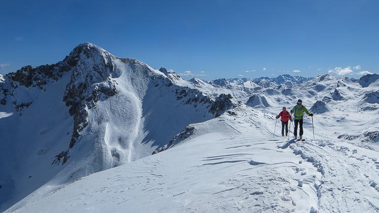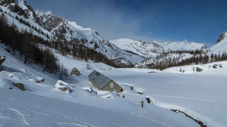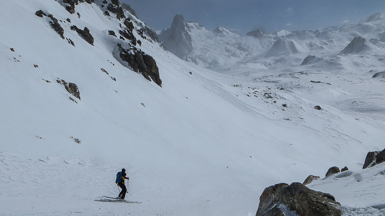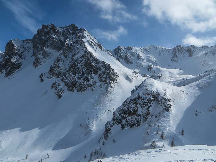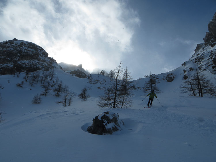 il reste encore de la bonne neige dans les mélèzes et les vallons abrités.