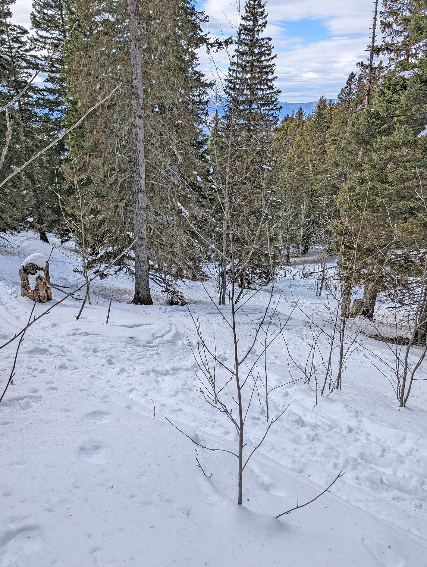 - Route dans la section plate à 1600 quelques coupures : pas déchaussage ce jour mais à prévoir