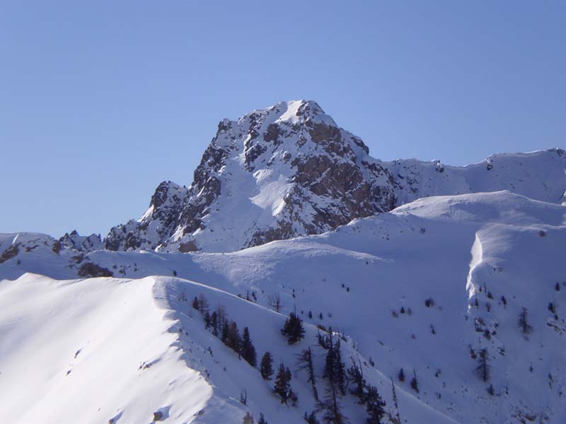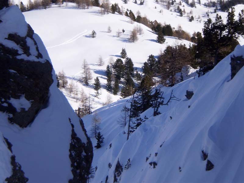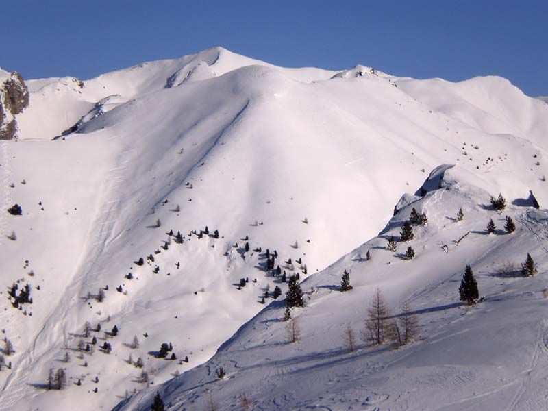 RAS pour la montée au Brunet. À la descente, nous sommes restés assez près de la trace de montée. Traversée à niveau (2250 m) sur le versant sud, remontée à un col juste à l'ouest de Riou Vert (2353 m) et même A-R à une selle vers 2380 sous Riou Vert ; enfin descente plein ouest puis nord en rive gauche du torrent de Bramousse. Nous sommes descendus assez bas, vers 1900, avant de traverser la forêt en de retrouver l'itinéraire de montée vers 1700. Sous Bramousse, nous avons préféré emprunter la route, très agréable avec du grain fin damé.