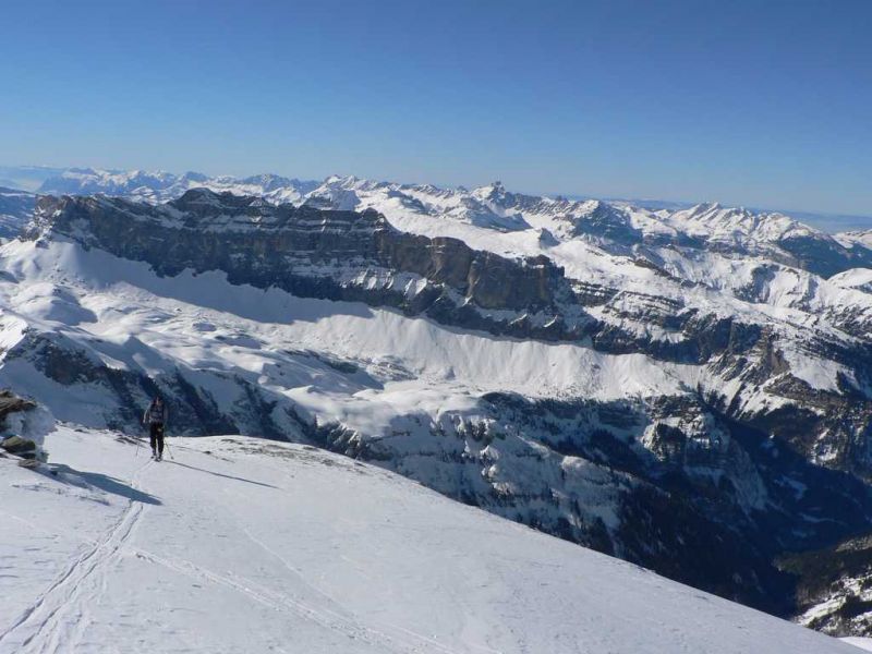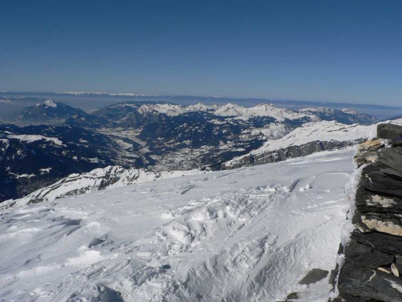 Neige soufflée en haut (au dessus de 2600m) puis de la poudre légère à humide suivant les orientations (descente vers 13h) jusqu'à 1700m et enfin pistée sur le chemin qui descend au village du Buet. Le vent a bien travaillé la neige dans le haut. Pas mal de plaques sous le sommet côté SE mais là où nous sommes passés cela tenait... Nous avons évité la descente directe là où l'{{avalanche du 7 janvier 2015}} est partie. Voir sur [data-avalanche->www.data-avalanche.org/listAvalanche/1420652580884]