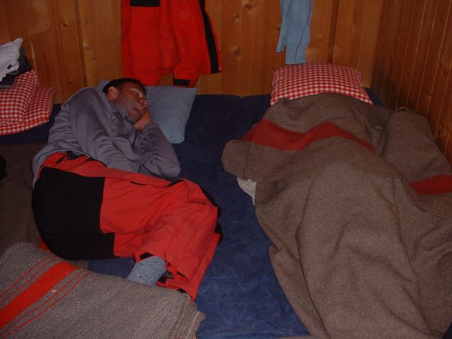 Je la rentre comme une course car on se fait près de 1000 m de descente et ... 1400 m de montée (de nouveau avec nos sacs qui nous (me !!) paraissent peser des tonnes. Soulagement à la cabane ... ouf.