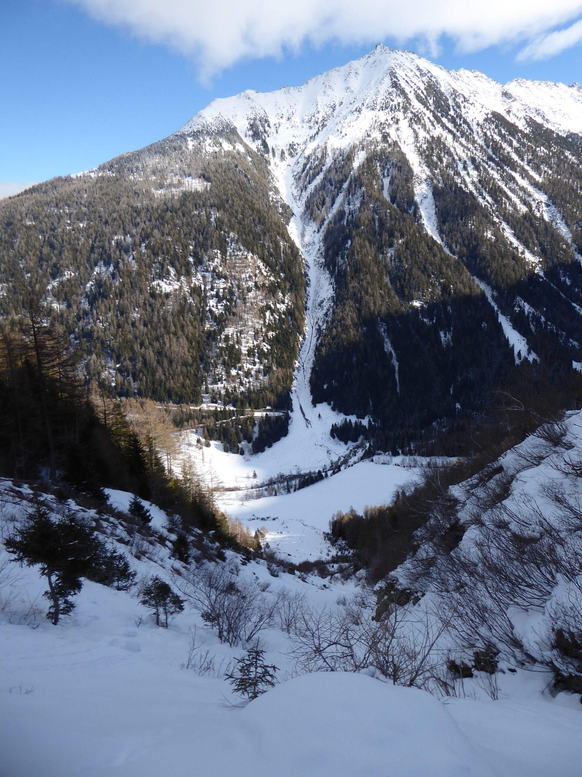 Le sentier habituel entre le Praillon et les Tseppes est actuellement fermé en raison de travaux. Il est préférable de partir du Peuty pour rejoindre le raide (mais efficace) sentier en forêt qui mène aux Tseppes. Un seul déchaussage d'une dizaine de mètres nécessaire sur ce sentier. Le haut du couloir est entre Carraye et la pointe du Van avait l'air chargé. J'ai préféré descendre sur les Tseppes et rejoindre le couloir est plus bas vers 1800.