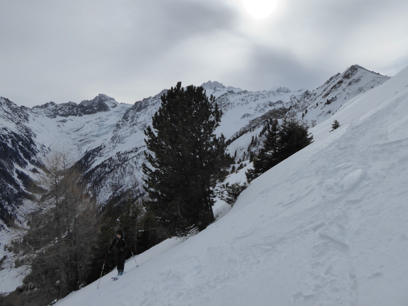 D1.1 jusqu'à Carraye depuis Cretton par la Mena. Descente par le même itinéraire.