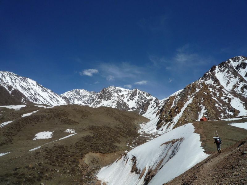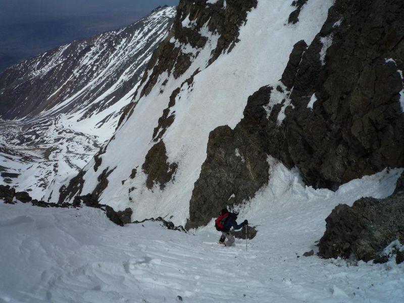 Nuit au [refuge San Bernardo->http://www.refugio-sanbernardo.com.ar/index_main_fr.htm] (2800). Vallecitos (2950m, station de ski abandonnée) - camp de base vers 4000m (200m sous le camp plus classique du Salto de Agua) - couloir est (supercanaleta) - sommet (5320m) - retour par le même itinéraire (chaussage au sommet).
