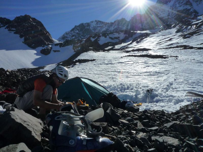 Après une étape confortable au refuge San Bernardo, départ vers l'impressionnante muraille des Cerro Vallecitos et Rincón. Nous installons le bivouac vers 4000m, où le calme du premier soir laissera place au vent durant les 2 jours suivants.