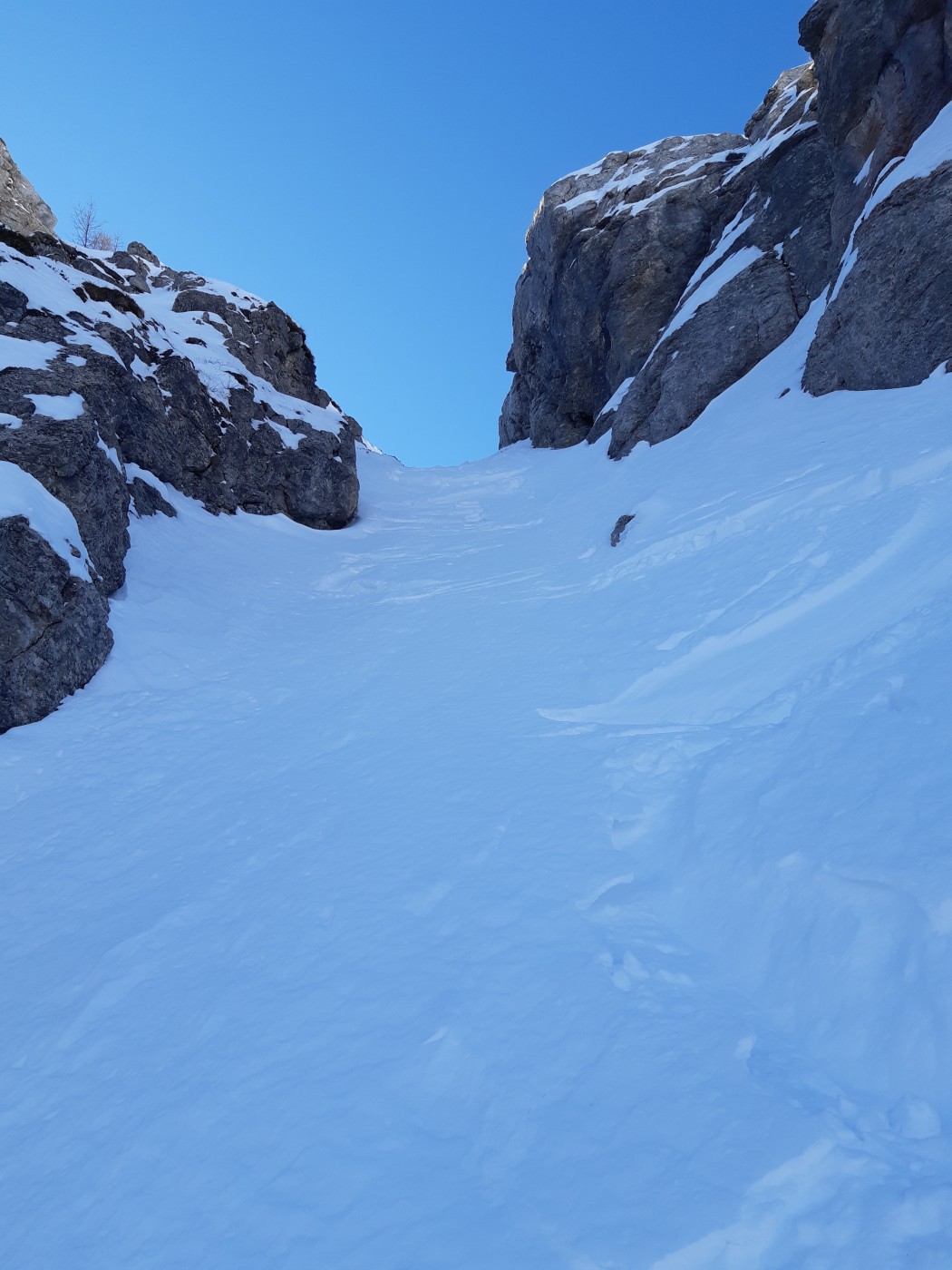 En versant nord malgré le redoux on trouve encore de la neige froide restée poudreuse. Ailleurs le regel est correct, le ski n'est bon qu'en pentes plein sud (sinon crouté)