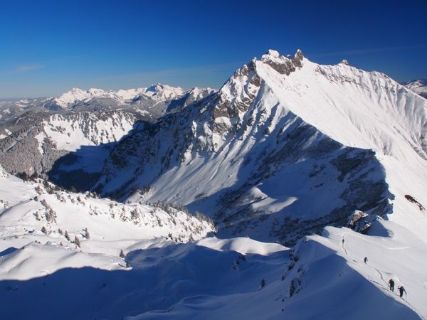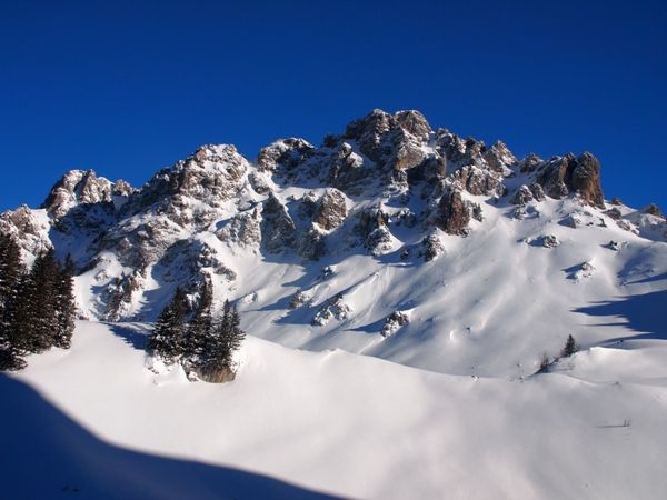 Ne disposant que de peu de temps, l'idée de base était de descendre par un des couloirs de Chalune puis de descendre directement par la combe de Chavant. Malheureusement, après un peu de guenillage pour tâter le terrain, les couloirs présentaient pas mal de cailloux. J'ai donc opté pour une descente en Sud encore pas trop mauvaise (poudre légèrement humide) puis une remontée à Chavasse pour descendre par la Vallon de Chavant où la forêt est un peu sport car elle n'est pas encore assez remplie.