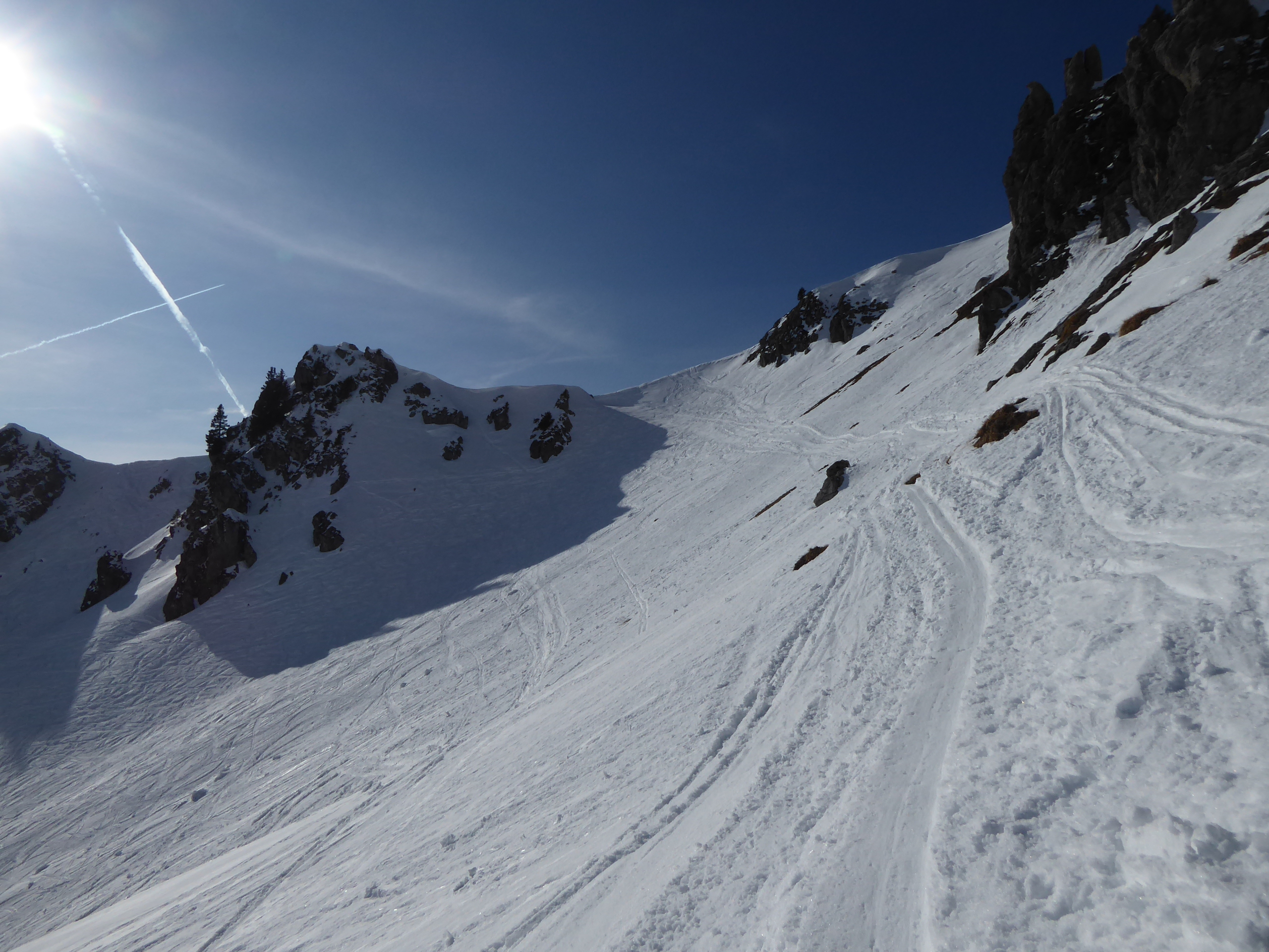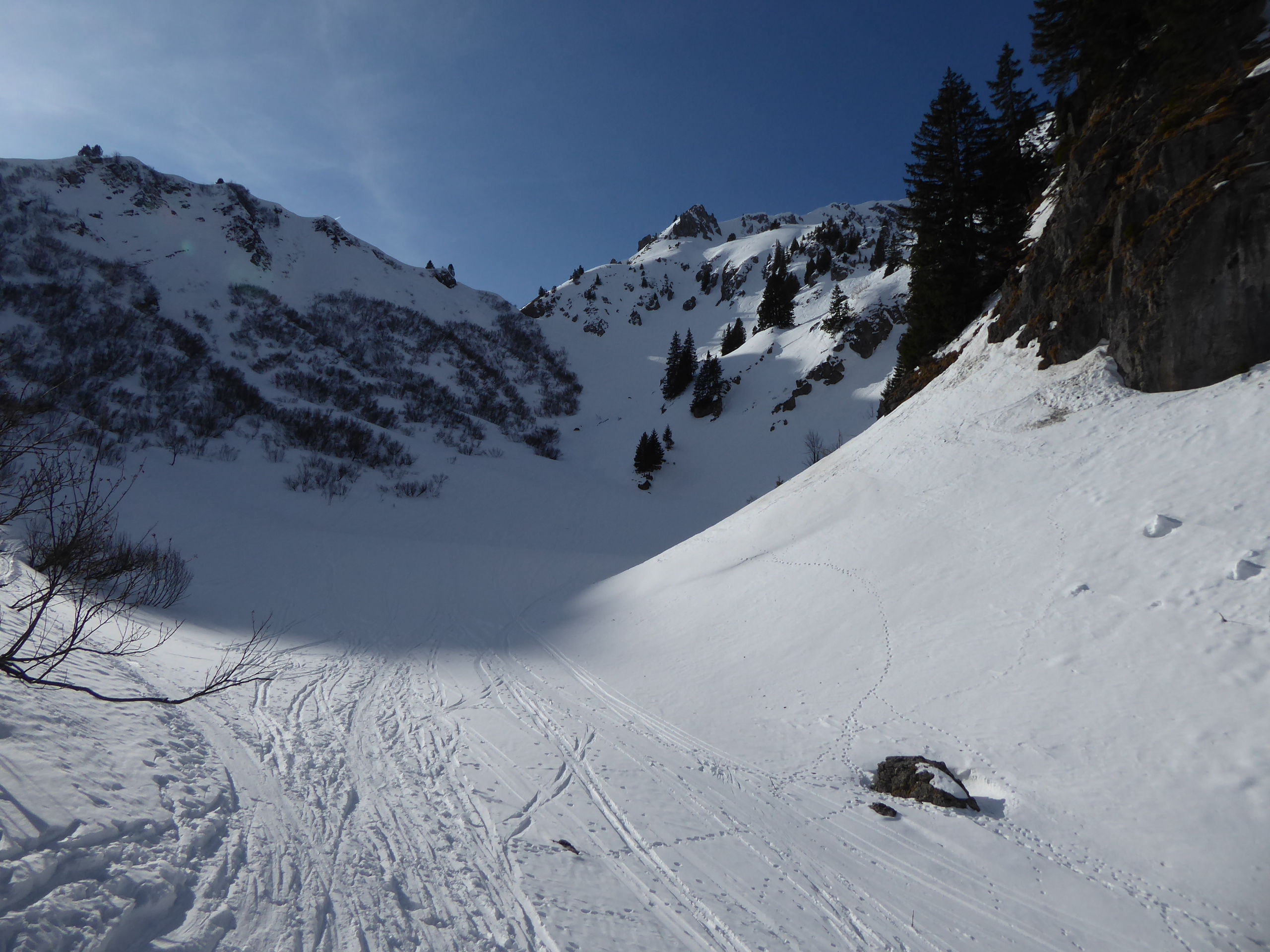 Beau tour mais cela commence à nouveau à être difficile de trouver de la bonne neige. Dans la descente du vallon de Chavan, j'ai déchaussé entre 1450 et 1300, le sentier n'étant pas assez enneigé.