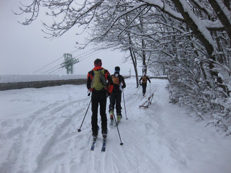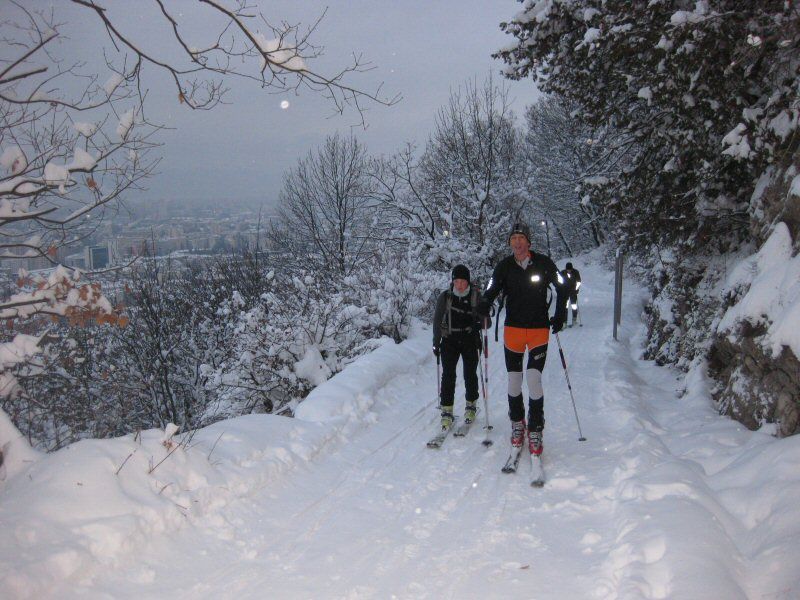 L'occasion faisant le larron, c'est en groupe que nous nous retrouvons au pied de la Bastille pour profiter des conditions rares de neige en plaine. Sebastien et Cyril (Gignoux). ont des obligations et rentrent après le Saint Eynard, JP a quelques soucis avec ses tibias dont le thermoformage n'épouse toujours pas la chaussure et stoppe au Sappey.