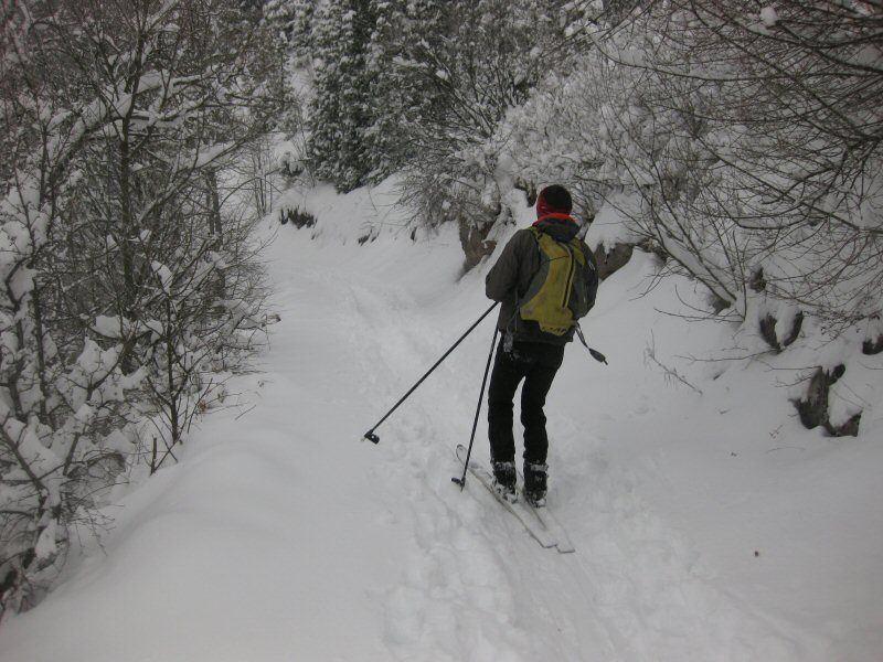 Karo, Cyril (Gaydou), Yvon et moi poursuivons donc jusqu'à Chamechaude avec le renfort des 2 Oliv'. Descente pas vraiment "grand large", on pourrait même dire "petit étroit" à tendance même bien technique entre le Rachais et le Mont Jalla (incotable mais plus dur à skier que certains 5.x en bonnes conditions!).