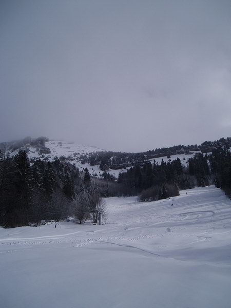 Un rando en Chartreuse par les temps qui courent, ça deviendrait presque exceptionnel. Mais bon, malgré les redoux successifs, l'enneigement commence finalement à être significatif en zone dégagée. Pour les éclaircies, il eut été préférable d'y aller plus tard dans l'après-midi, mais pour un midi/deux c'était déjà très bien. Arrêt sous le sommet, car celui-ci était encore dans le brouillard, en plus comme ça c'était meilleur au niveau timing.