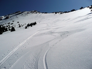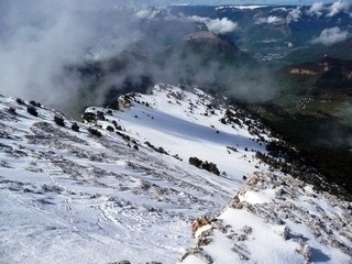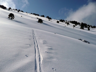 Ski vélo moyennant un déchaussage sur 50 m. Petite couche de neige fraîche tombée la veille