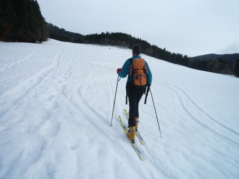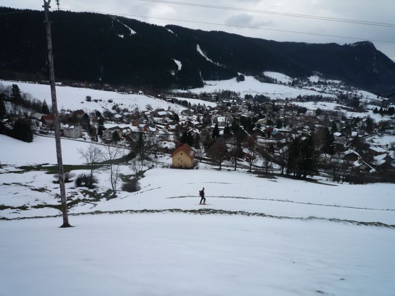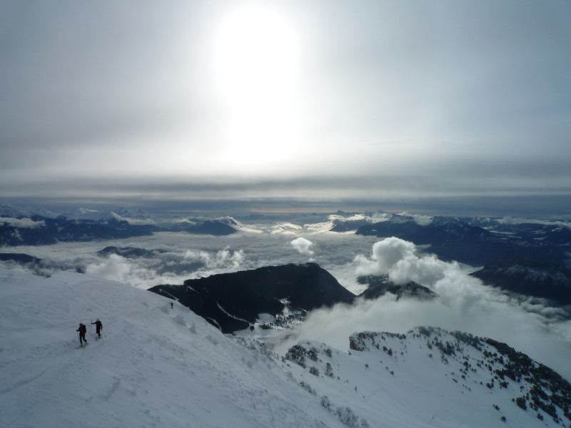 Prairies de Montjallat=>Habert de Chamechaude=>Pas des Bachassons=>Sommet.Tentative de descente sous la Croix vers la boite au lettre mais erreur d'itinéraire à vue .Retour à la Croix.Descente classique puis retour au Sappey grâce au régional de l'étape qui m'a guidé depuis le teleski .2 petites remontées sans les peaux pour regagner le hameau du Churut.
