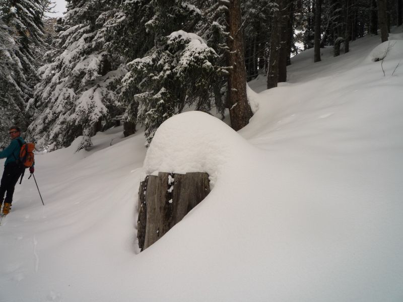 Encore 10cm supplémentaire dans la nuit:LPN vers 1500.La forêt est encore bien remplie.Quantité conséquente au Habert de Chamechaude supérieure au Pas des bachassons(à altitude presque égale)