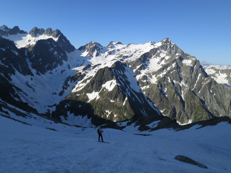 Névé partout. Excellent regel malgré l'isotherme élevé.