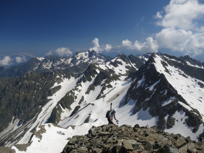 Ref des 7 Laux=>rocher Blanc=>Marmottane=>col du Tepey=>descente est=>selle du puy Gris=>col de Comberousse=>pointe de Comberousse=>face est=>col Morétan=>lac Supérieur=>col du Pertuis=>couloir ouest=>Gleyzin. D+/D- = 2900/3900 dont 3500 skiés