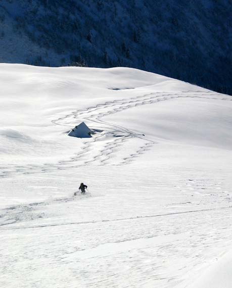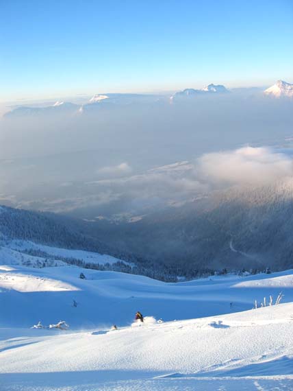 Les deux plus belles sortes de poudre, un peu plus dense et "rebondissante" en sud, duvet-givre en nord. A signaler des piquets de fer extremement dangereux posés sur l'arête, de quoi transpercer un skieur de part en part
