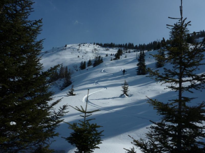 "Petite" montagne mais grand danger! C'est ce que je me suis dit une fois rentré. Pas mal de stress à la descente - heureusement c'était pas long. Sinon ski moyen, la crête est pas super skiable. La vue est cependant très belle. Du monde dans le canal du Rognier, un solitaire dans le couloir NO du gargoton et 4 personnes au sommet dénudé du Chapotet même. Personne du côté des Portiers.