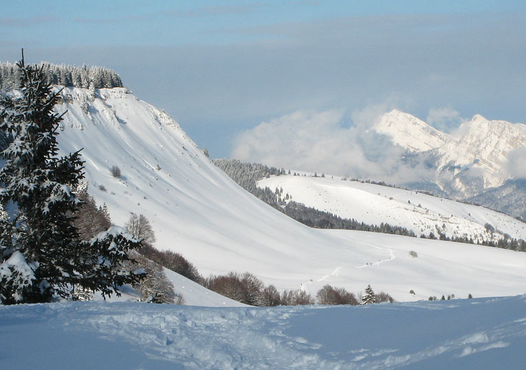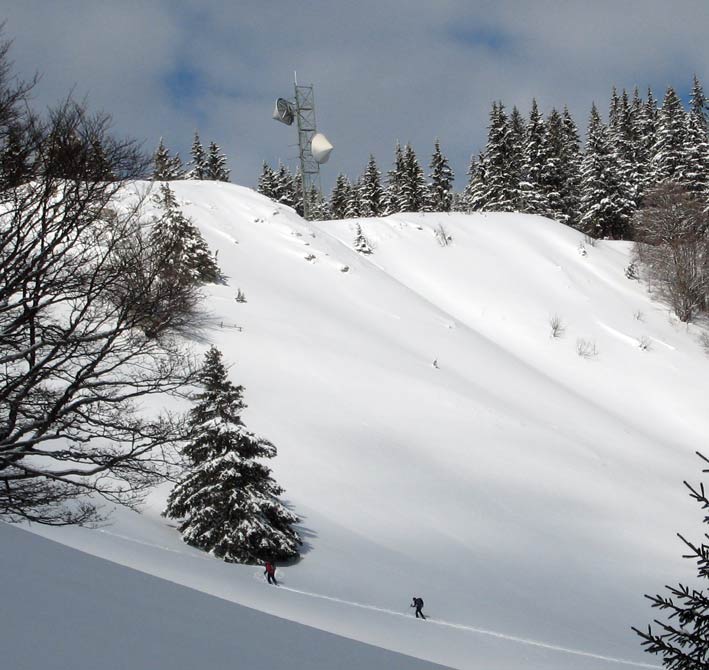 L15 en descendant par le chateau ver jusqu'au ressaut vers 1270 m, puis chemin jusqu'au Truc. Remontée du Bouchet jusqu'à la crête des Aigaux, descente face est puis diverses variantes non tracées -> aigaux