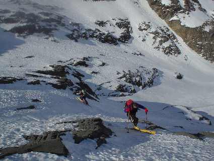Un trËs belle montagne par un itinéraire magnifique, la trace était déjà faite, la recherche du l'itinéraire dans la partie inférieure doit corser sérieusement les difficultés. Comme il l'a été souvent remarqué, l'itinéraire décrit sur la carte au 1/25000, n'est certainement pas le meilleur.