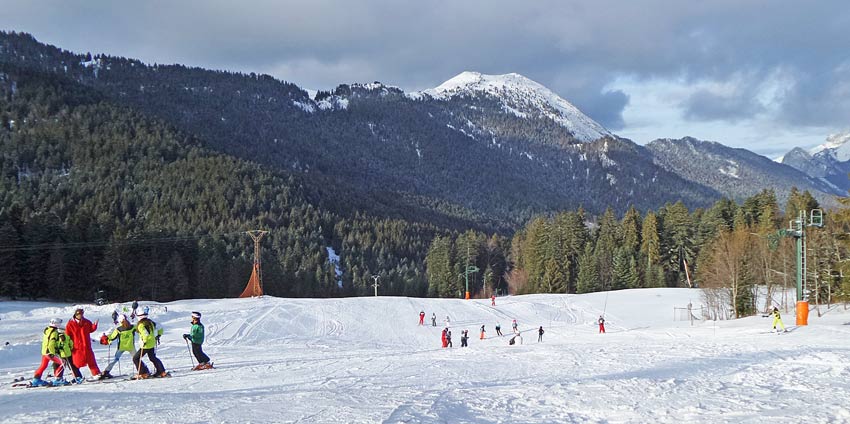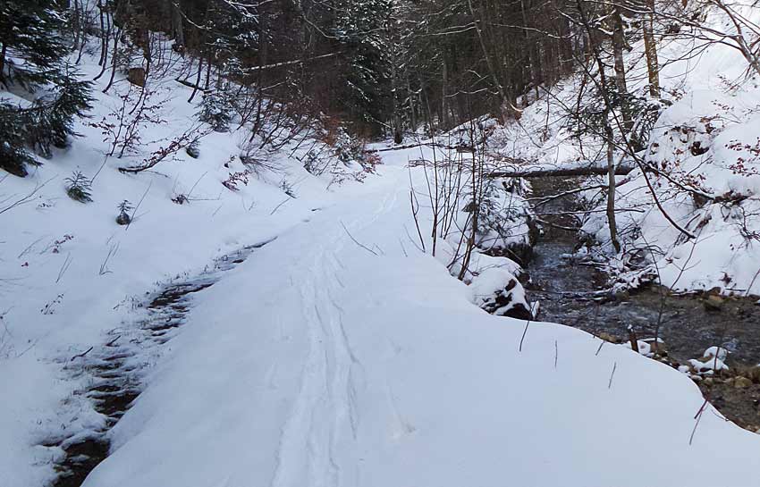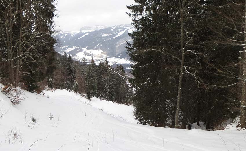malgré la quantité globale faible la formation d'une sous-couche regelée jusqu'à 1150 m (ici au nord du col) permet de skier sans toucher avec une neige poudreuse assez légère. Au retour je me rends au pied de Chamechaude mais un copain qui en revient me dissuade d'y aller (trop de pierres). Beaucoup de monde à la station du col : alpin et fond bien tracés.
