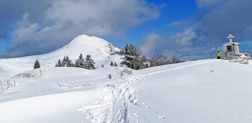 du col de porte par la route. descente est -> 1750 avant de rejoindre la croupe. En raison du faible remplissage ne passe pas à niveau : 20 m en escalier. Sommet miné sur 20 m.