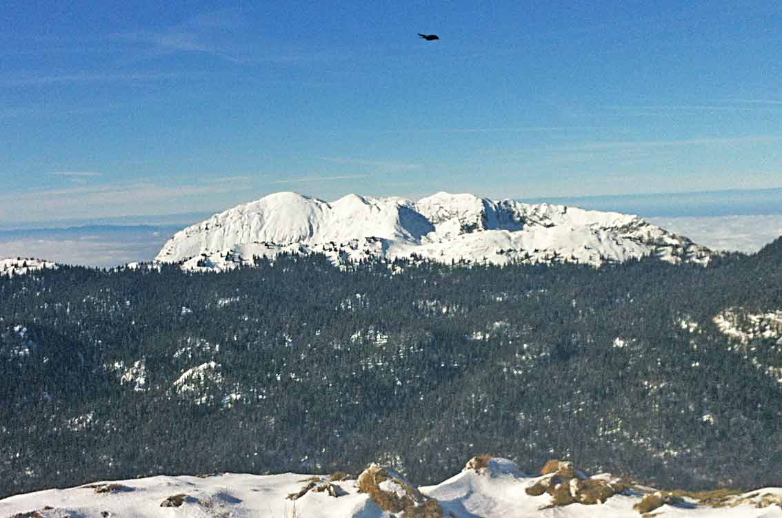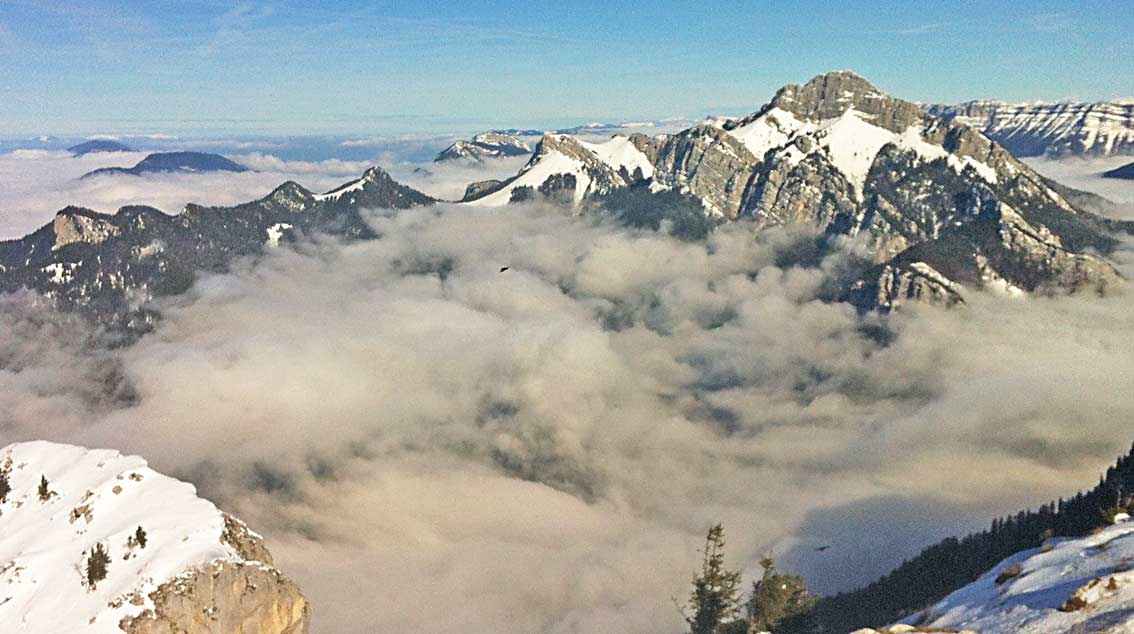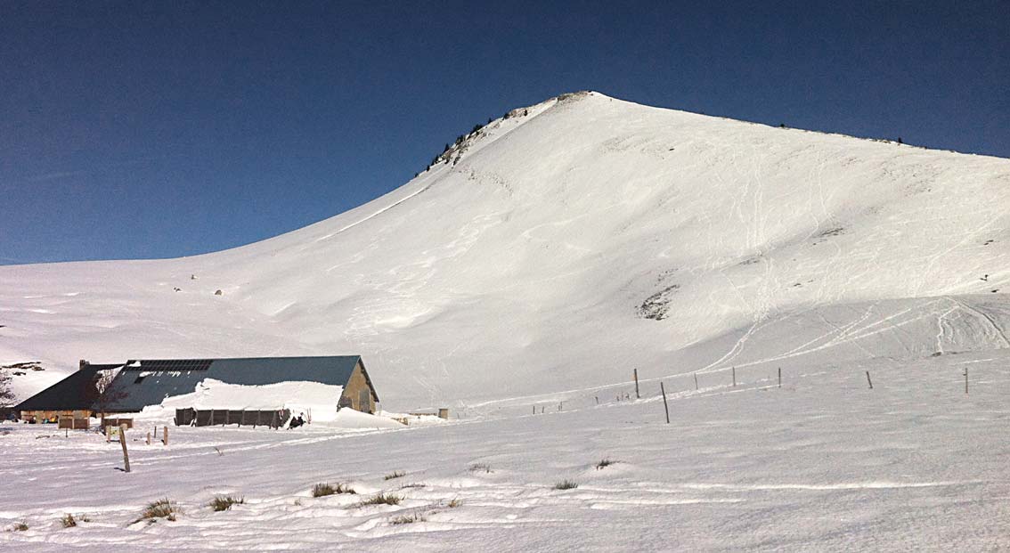 AR depuis le col. Trop de traces profondes (raquettes) non dégelées pour envisager l'ancienne piste.