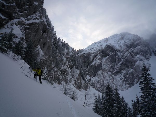 La couche récente de surface partait sous nos skis en petite plaques sous nos skis.