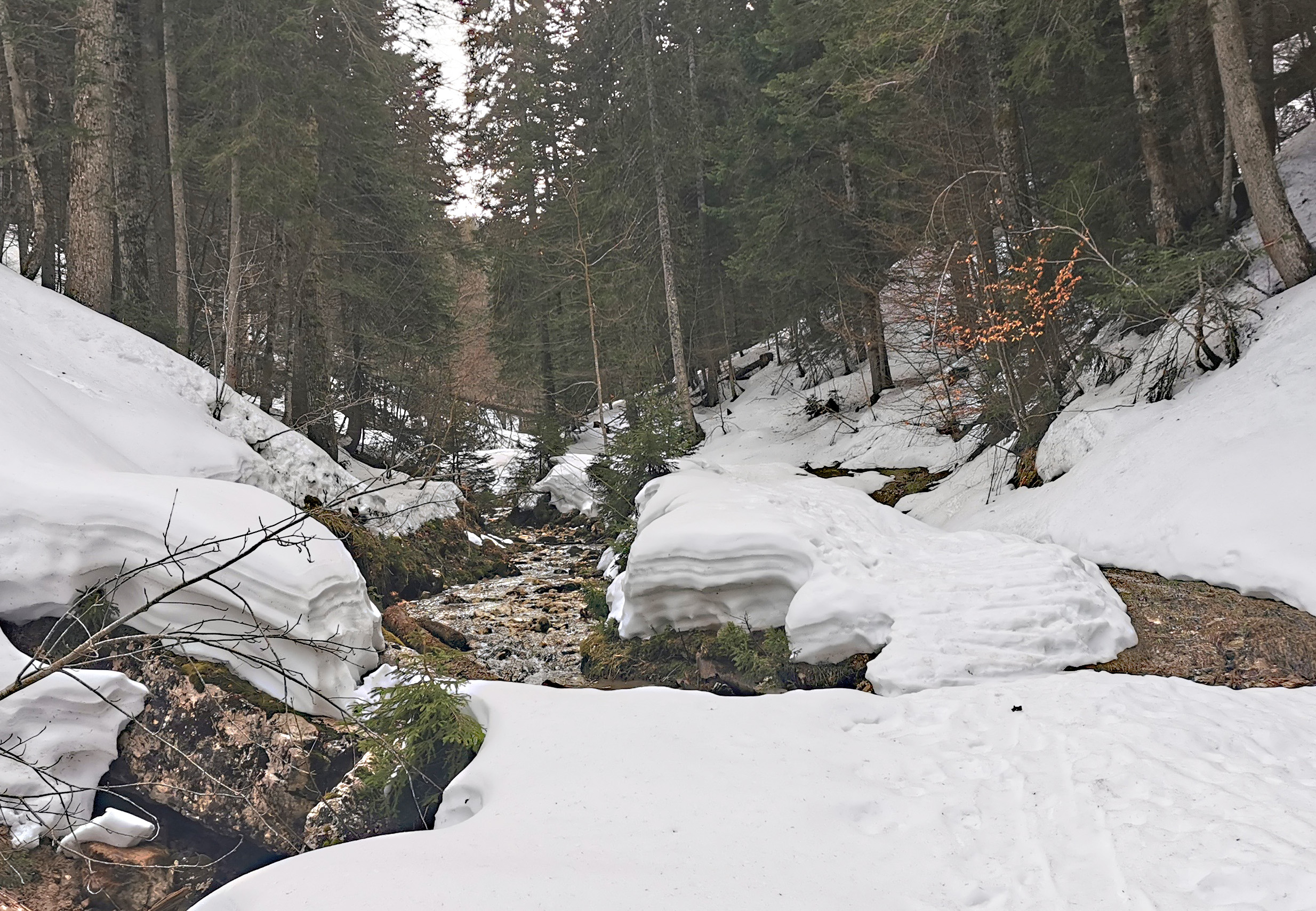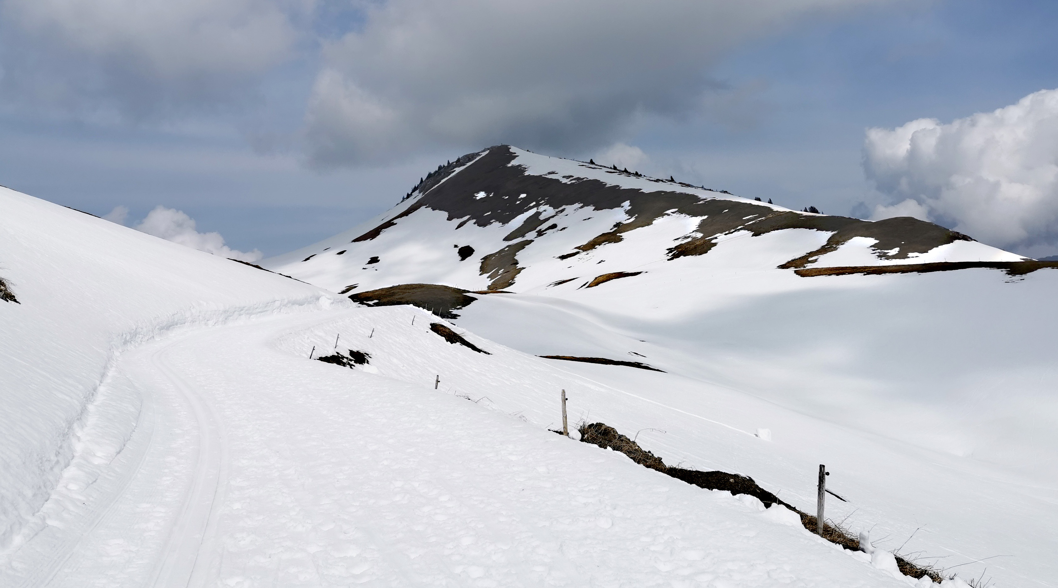 Neige de printemps portante sur le damé et faible enfoncement en dehors (5 cm max)