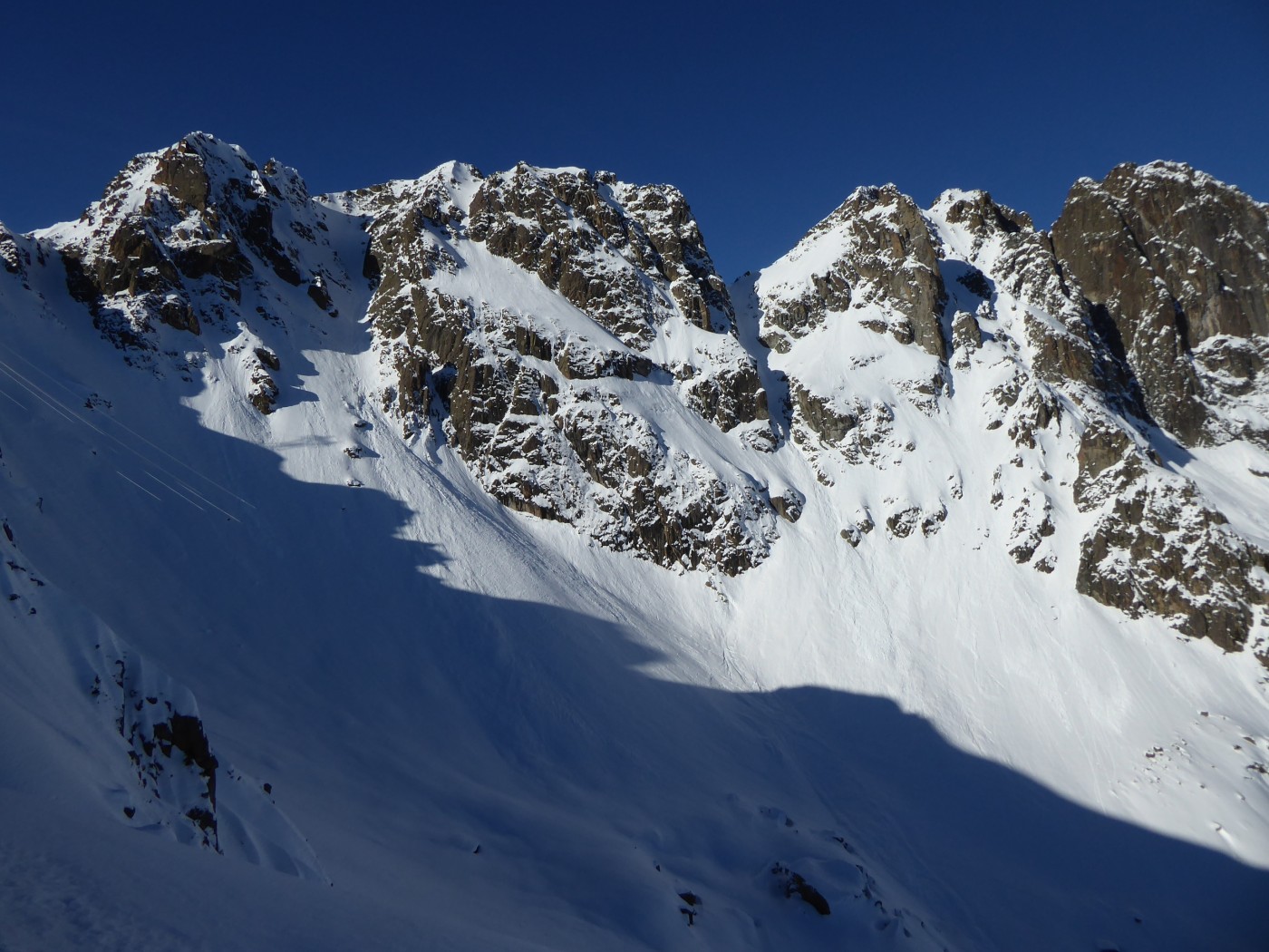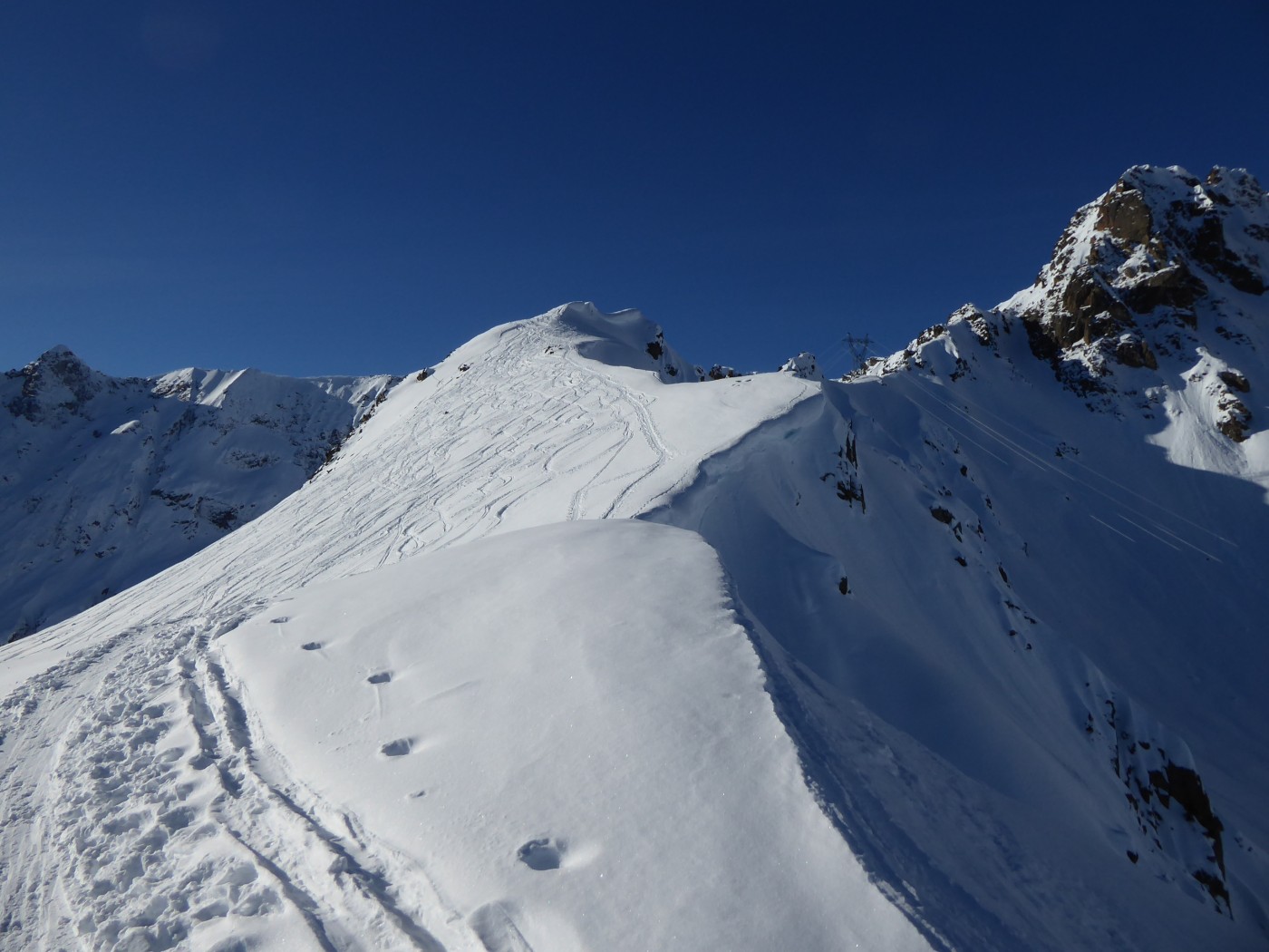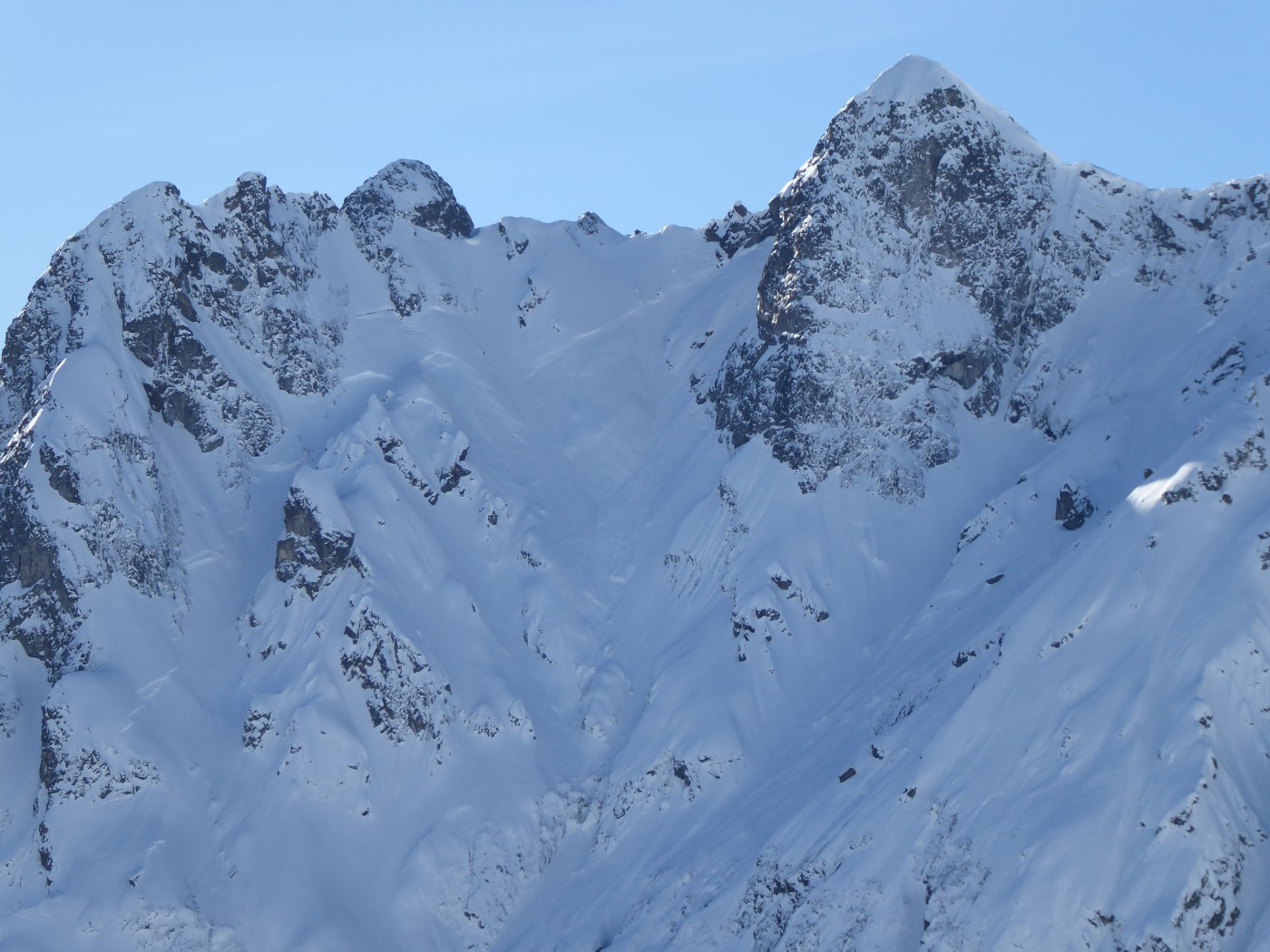 Neige en cours d'humidification dans les orientations sud aux altitudes parcourues. Quelques purges dans les pentes E à O raides.
