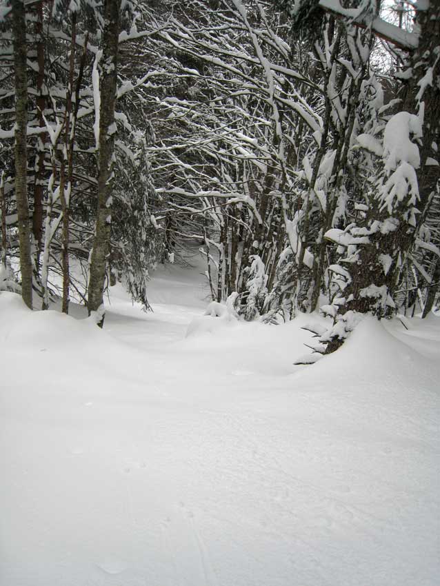 J'ai déjà plusieurs fois fait demi-tour dans des course réputées faciles de Chartreuse comme au col de Léchaud (de la Ruchère) ou des Ayes (depuis Perquelin). Aujourd'hui je fête une nouvelle "première" en renonçant à sortir sur l'arête du dôme d'Arguille, même après avoir retracé bien à gauche. Seul, sans visi et informé d'un déclenchement par des prédécesseurs, j'ai préféré skier la forêt jusqu'au col. Pas la moindre inquiétude en revanche dans le bec Charvet, plus raide mais beaucoup plus sûr.
