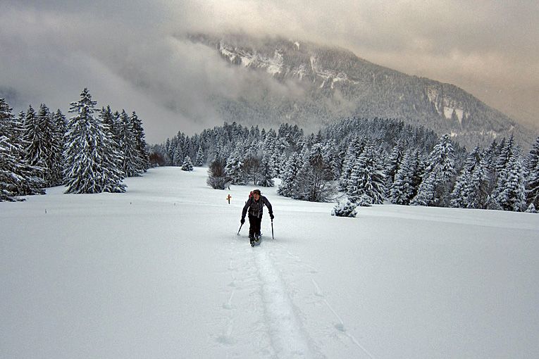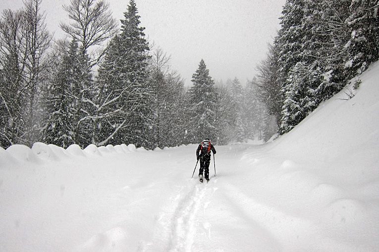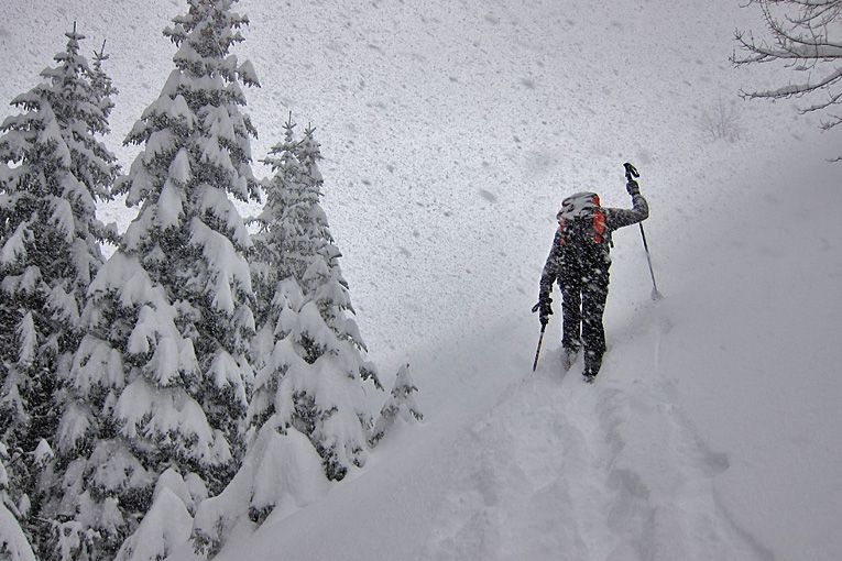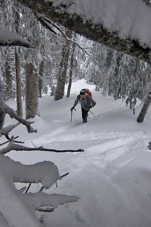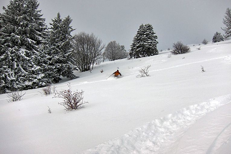 Grosse quantité de neige ultra légère (même si il y en a un peu moins qu'au col de Marcieu la veille) et ça continue encore jusqu'en plaine, 3h après le retour au parking. Petites purges naturelles venant de surcharge sur rochers, pentes très raides ou arbres. La stabilité semble bonne mais vu la quantité, on évite soigneusement les larges zones dégagées à partir de 30°. Attention toutefois au travail du vent (pente sud-ouest de l'Arguille par exemple). Conditions de ski exceptionnelles avec un glisse cinq étoiles.