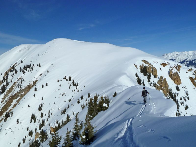 Montée de G5 (forêt de l'Outraz) - couloir NO à vue (G4.1) puis jusqu'à 1750 m - remontée arête ouest - descente combe Génin (G5).