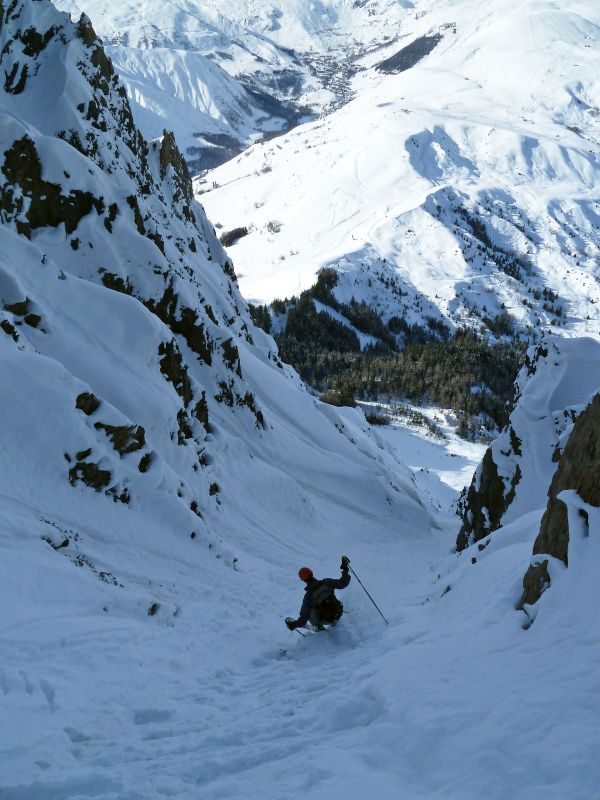Selon JC, véritable "concierge" du couloir, moins d'une dizaine de passages à skis depuis la première en 1983. Confidentialité, non pas à cause de la difficulté pure mais sans doute du au fait qu'il n'est visible que depuis les pistes (Corbier-Toussuire). Et globalement, un sommet sauvage à souhait, central mais très peu fréquenté, y compris dans la combe Génin pourtant immanquable et très rapide d'accès.