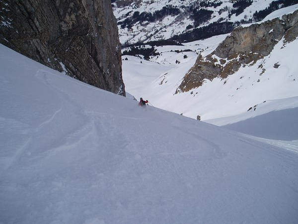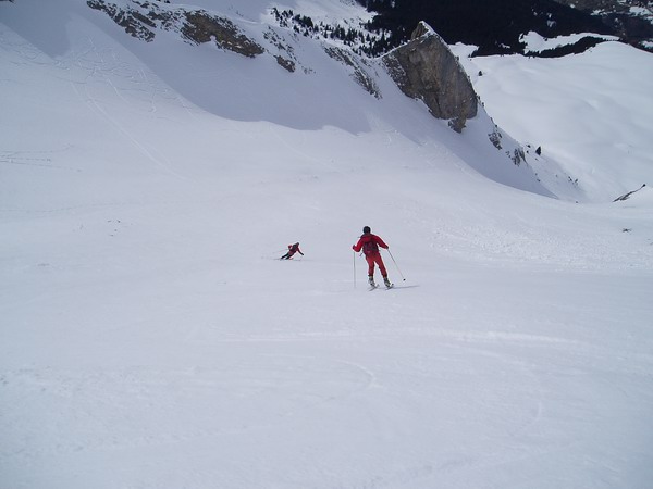 Assez bon regel et température pas trop chaude encore. La cuisson n'est pas tout à fait terminée en versant W et SW mais ça passe bien en se faisant léger. En facette sud c'était transfo et en facette nord encore poudreux jusque vers 1500.