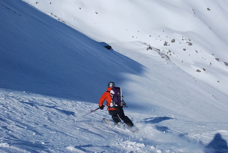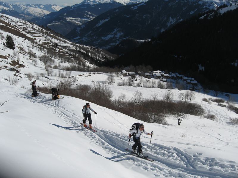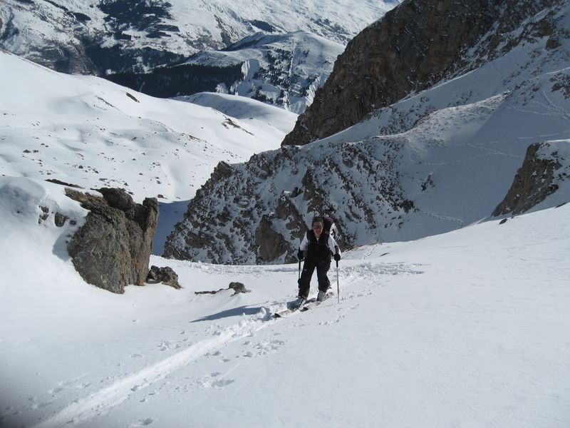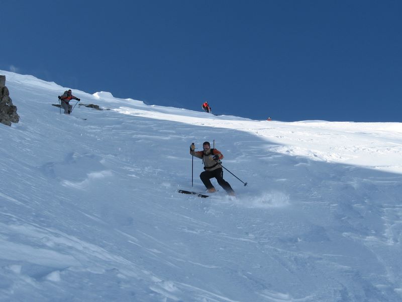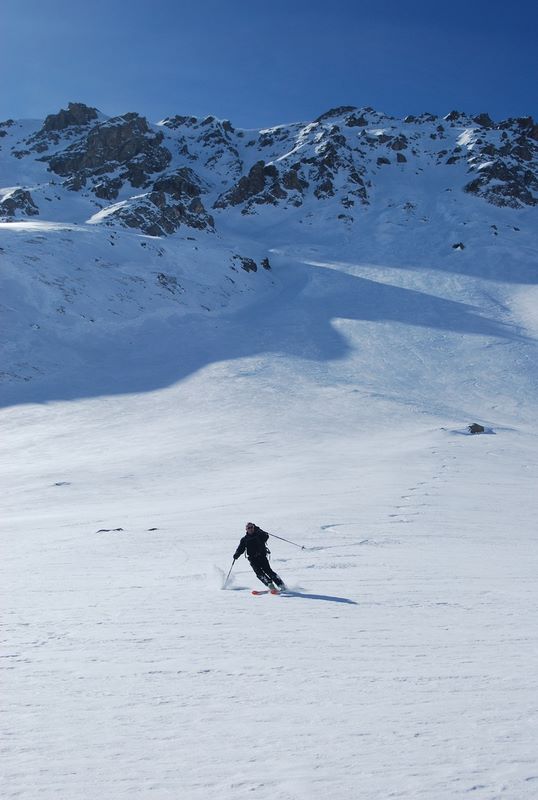 Coup de chaud dès notre départ du Villard, la neige est déjà en cours de transformation !! et ca va cogner durant toute la montée jusqu'au vallon de Barral ou il fait un peu plus frais. Pour le reste que du bon et du beau, on visite un peu toutes les faces de la bête (le Cheval!) avant d'attaquer la descente. Une fois trouvé la faiblesse de la zone cornichée du départ, c'est un pur régal, belle pente, bonne neige, et un déversoir énorme qui permet "d'envoyer du gros". Une superbe boucle et du beau ski.
