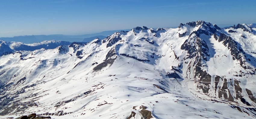 Excellent ski sans enfoncement et bonne glisse jusqu'en bas même l'après-midi et hors-pistes. En face (Lauzière sud-est), on remarque la bonne tenue des accès y compris en versant chaud avec encore pas ou très peu de portage. Sans doute dû aux sous-couches du début de saison (avant les chutes de mars) dont la Savoie a bénéficié (Beaufortain, Lauzière, Vanoise...)