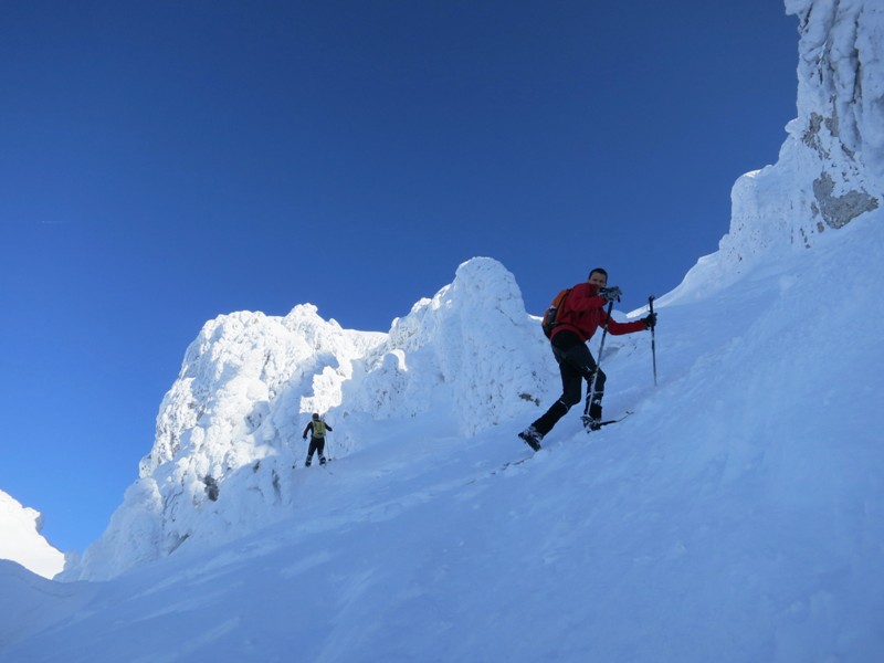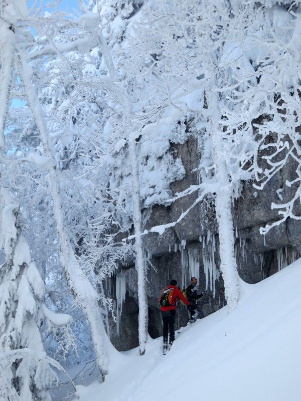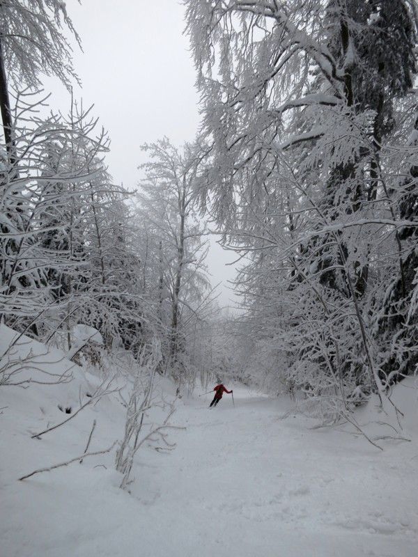Encore une bonne session de Chartreuse profonde dans ce secteur assez préservé semble-t-il. Des traces jusqu'à l'embrenchement du Cul-de-Lampe, puis plus rien. Forêt superbe, recherche d'itnéraire, sortie au soleil, et surtout retrouvailles avec Oliv, le régional de l'étape.