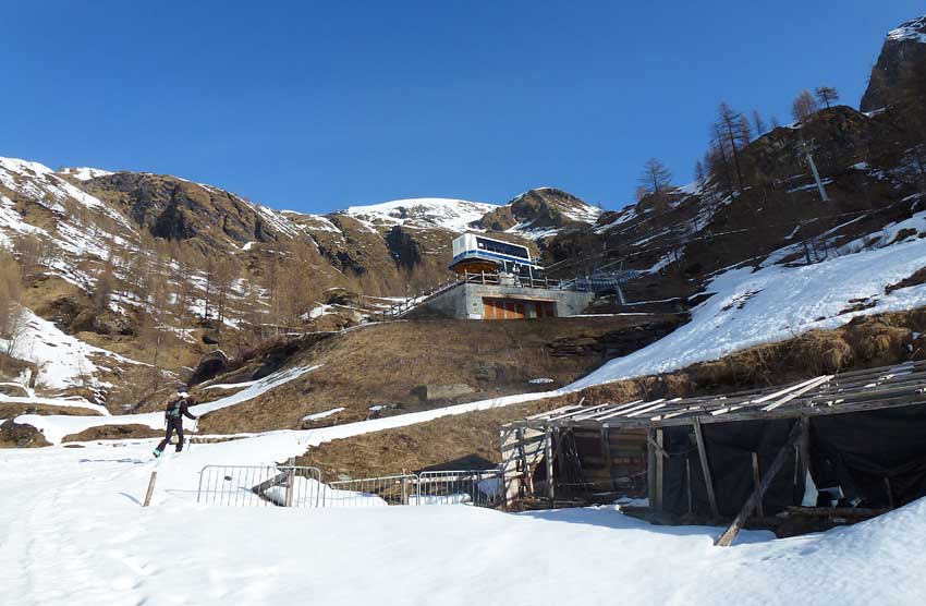 Piamprato est un beau site très ouvert mais dans les conditions du jour, seule la Cima Beccher aurait offert un choix sûr et peu difficile (2.3 si on la fait en aller-retour). Le tarif minimal pour les autres courses (Rosa, Balma etc...) ne doit probablement pas passer sous le 3.X