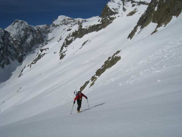 C'est sans doute la voie normale ,l'itinéraire le plus direct pour accéder au sommet de la cime de Clot-Chatel.Itinéraire complexe,dérobé mais jamais ni trop raide ni trop expo.Magnifique ambiance ,souvent aérien et pente soutenue dans les 500 derniers mètres.4O° SUR 500m