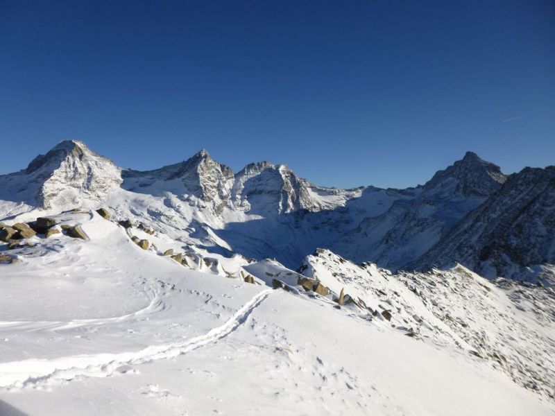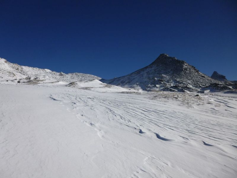 Il a moins neigé ici que sur Chamonix et le vent a décapé les pentes au-dessus de 3000m. Quelques plaques se sont formées.