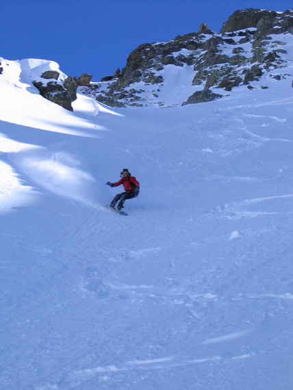 La petite chute de la veille (5cm à 1750) est très appréciable, surtout quand le haut de la face est encore poudreux.