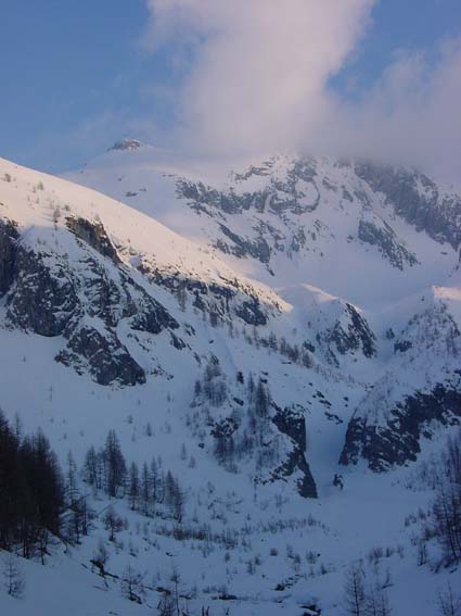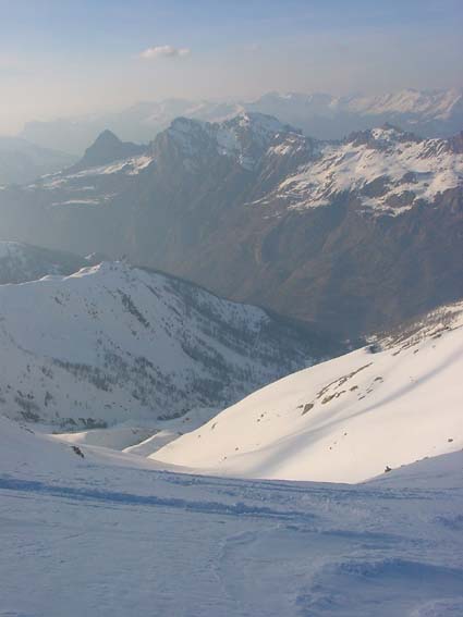 Parti sans objectif precis pour une reconnaissance je me retrouve au cimet d'où il me revient que VRL avait fait une traversée sur le nord (course 03-146). Facile, il n'y a qu'à suivre les traces. Chou-blanc par contre pour le stop, 4-5 km sur le goudron en pompes de ski : exercice recommandé pour les jeunes filles qui souhaiteraient acquérir sans bourse délier cette démarche ridicule et martiale qui sied aux mannequins.