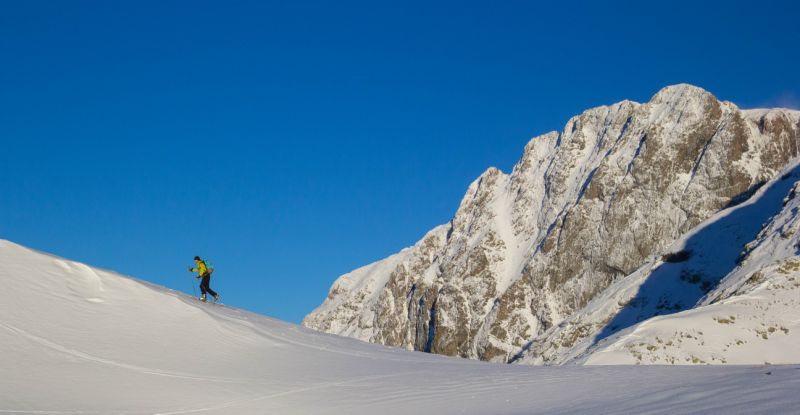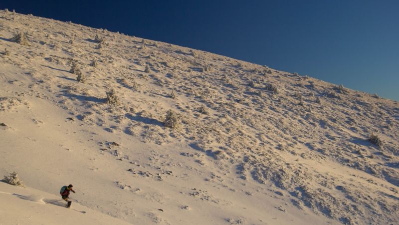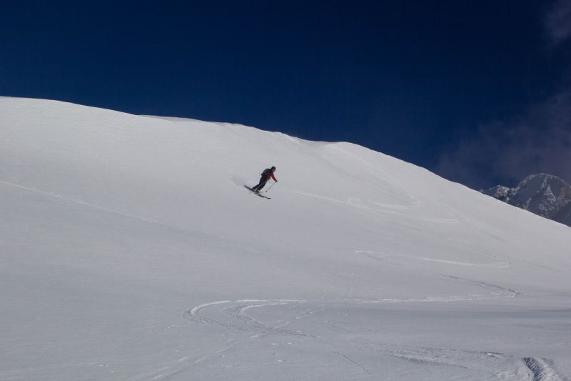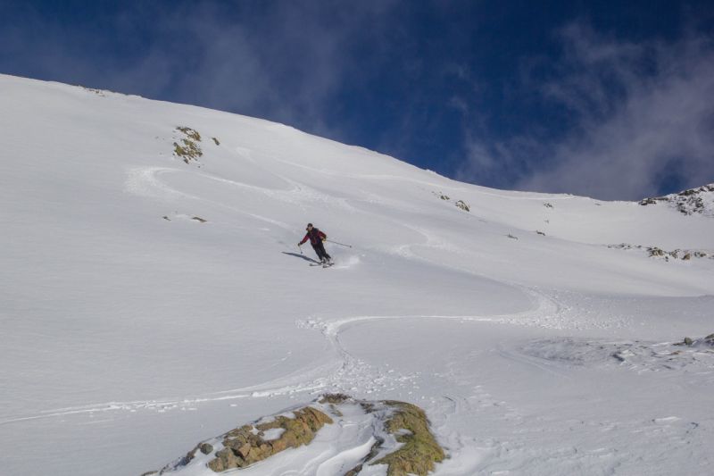 peu de neige mais pour le ski, plusieurs points positifs : neige rapportée densifiée dans les combes sud, neige durcie sur la crête elle-même et peu de cailloux sur le bas de la vn où ce serait inskiable sinon.