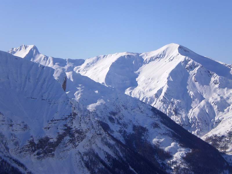 J'ai suivi une bonne trace à partir de la chapelle Saint-Pierre, merci aux deux traceurs. Montée en contrebas de la croupe nord-est, plus praticable. Au-dessus de l'antécime, d'abord couteaux puis à pieds sur 50 m à cause de la vitifiée : crampons inutiles, puisqu'il faut casser la croûte. À la descente des pentes est, je me suis engagé dans l'axe de deux petits couloirs qui mènent à de petits ressauts rocheux et glacés. J'ai dû partir en traversée à gauche pour m'échapper...