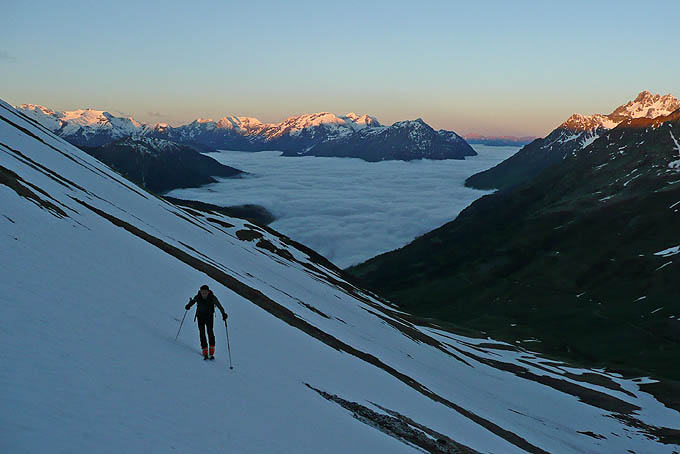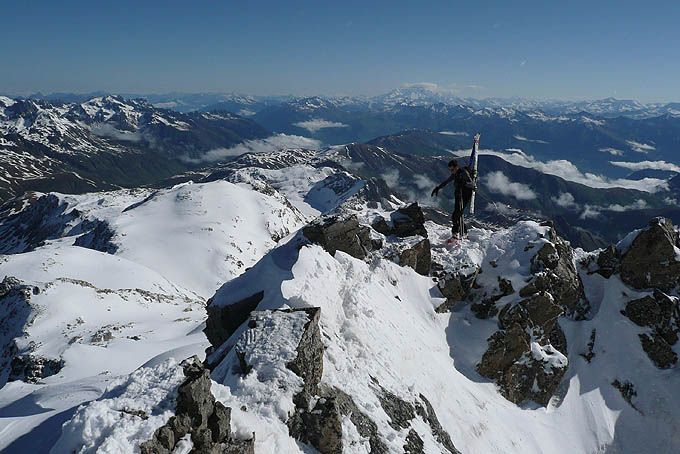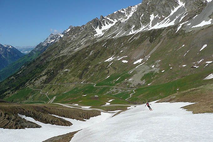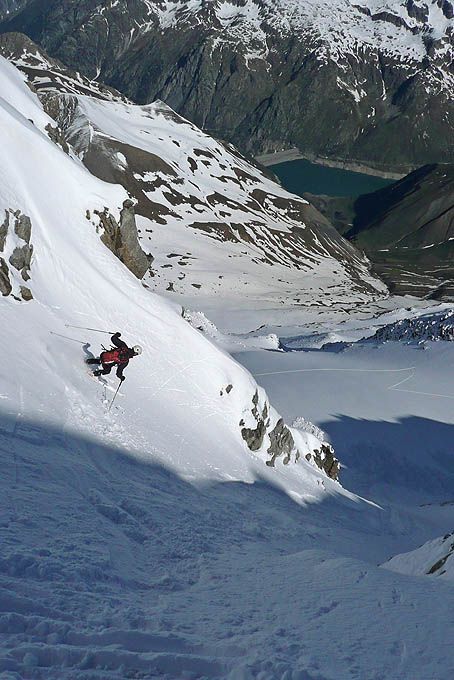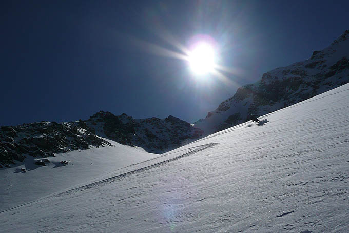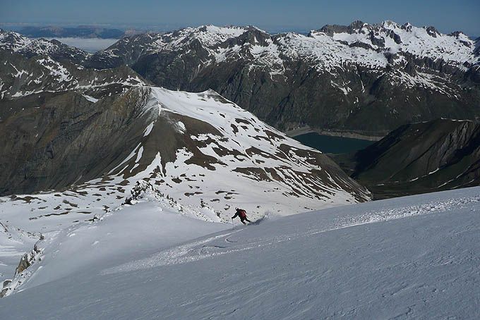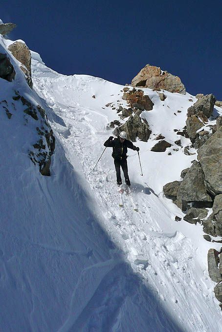 Ca a bien coulé de partout, tous les couloirs sont abîmés. La neige de la veille n'a pas tenu sur la sous-couche sablée. Conditions de ski très bonnes sous 2200 (névé) et au-dessus de 2800. Correcte entre les deux, à condition de descendre tôt (regel superficiel sous 2700).