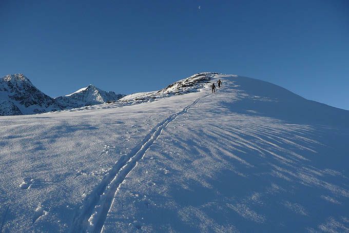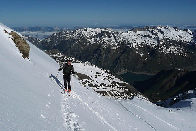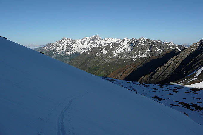 Comme toujours au printemps le lendemain d'une chute de neige avec refroidissement, une luminosité limpide qui rend la balade très agréable. De belles rencontres à la montée, D'abord E. Cabau et Bruno partis pour l'Etendard ouest puis Pierre Gignoux et deux compagnons (eux-aussi allant vers l'Etendard), partis une vingtaine de minutes après nous et nous avalant littéralement sur le glacier des Cochettes.