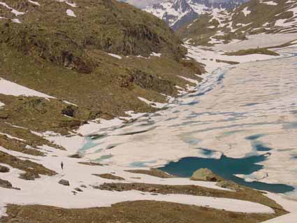 On avait prévu de traverser mais la neige manque pas mal au pied des Cochettes et est pratiquement absente des aiguillettes de Vaujany. Apparemment "poudre transformée" en nord. C'est vraiment la fin du ski dans le secteur Glandon-Croix de Fer. - Rousses : lac Bramant encore skatable, mais lac Blanc bien dégelé ; la pente sud au nord du lac Bramant n'est plus skiable. - Belledonne : combe de la Croix, 2200 avec interruptions ; rocher Blanc, une bande au pied du Piliozan permet encore de descendre assez bas mais avec une interruption plus haut.